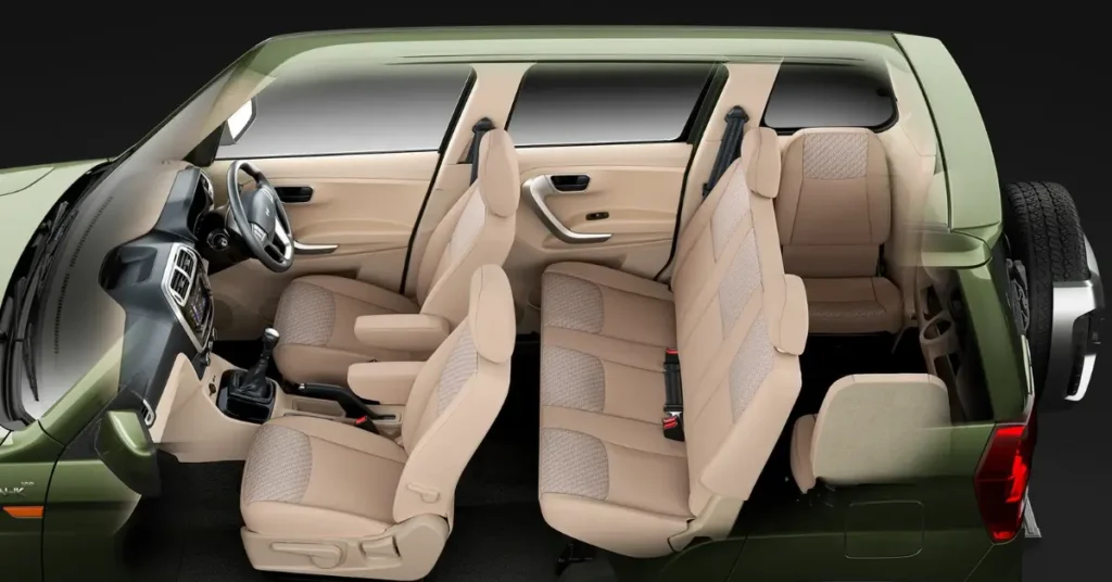 Mahindra Bolero के केबिन में अब पहले से ज्यादा फिनिश और आराम देखने को मिलता है। सीटों की डिजाइन बदली गई है और उनमें अब बेहतर कुशनिंग है। कुछ वेरिएंट्स में लेदर जैसे अपहोल्स्ट्री मिलती है जो सफर को और आरामदायक बनाती है।